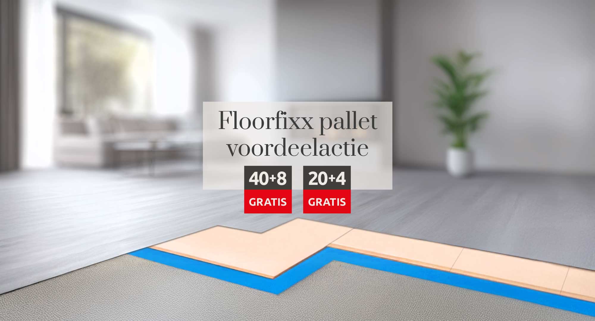 Bij afname van 1 volle pallet van 40 pakken (+8) krijg je maar liefst 23 m² Floorfixx gratis!